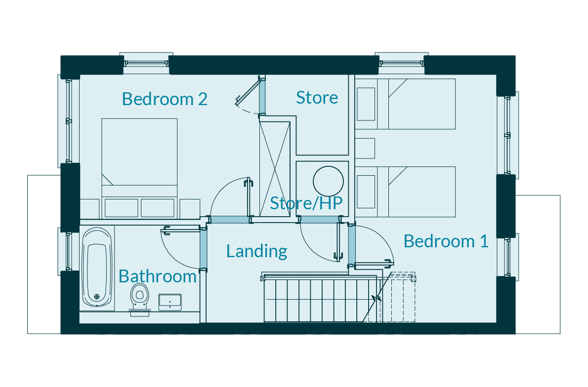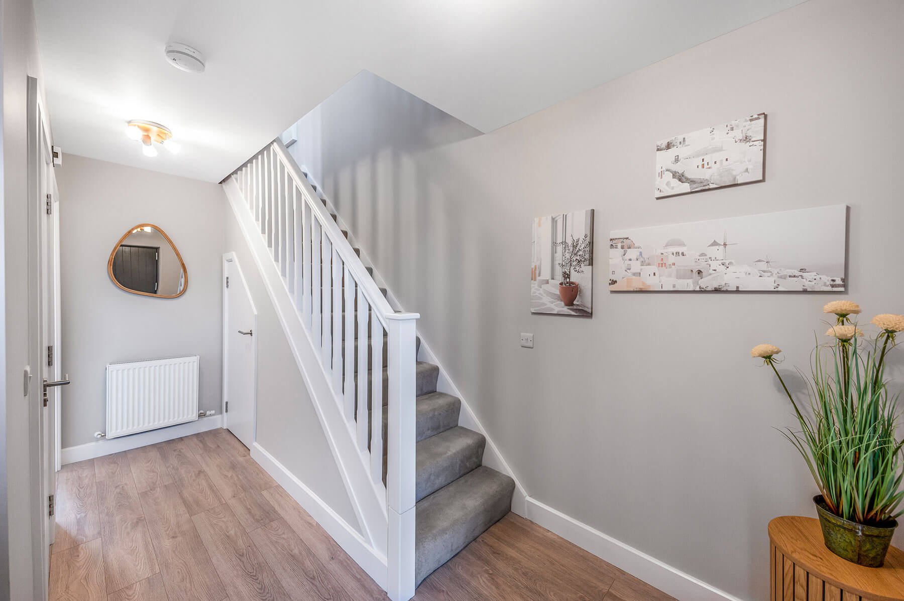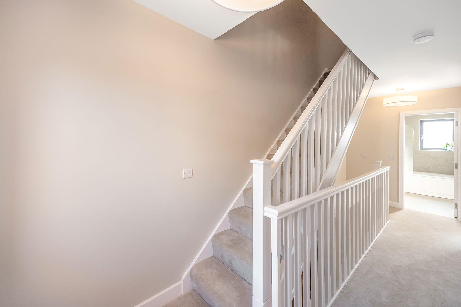 Every home at Church Fields has enjoyed a rigorous and thorough structural treatment – from conception to completion. Concrete foundations are laid to Structural Engineer’s specifications. At ground level, a layer of concrete sits atop the insulation to maximise heat-retention. The overall structure features timber or composite joists with stylish flooring of either softwood or ply/ composite boards. Staircases are timber with painted timber balustrades. The separating walls between houses are structural timber double-frame, supplied and erected by a specialist crew to meet all regulations for sound-containment and fire-safety.