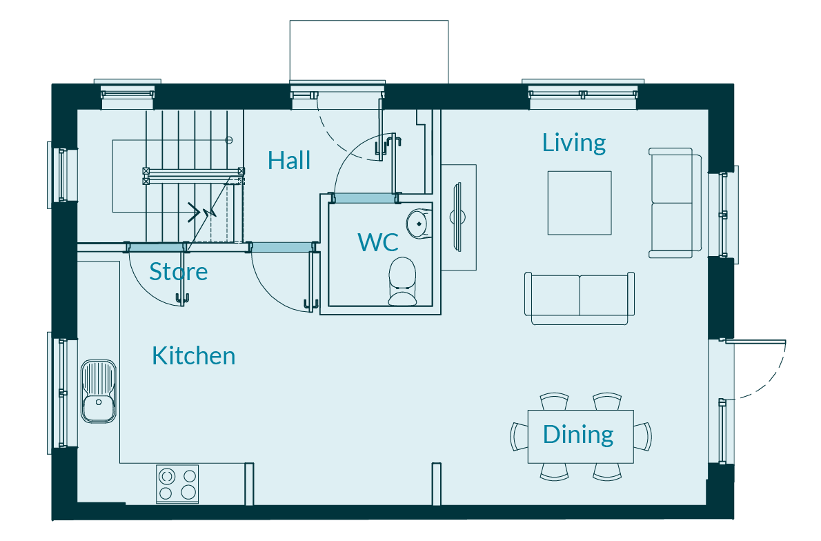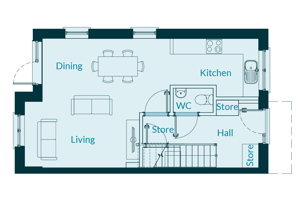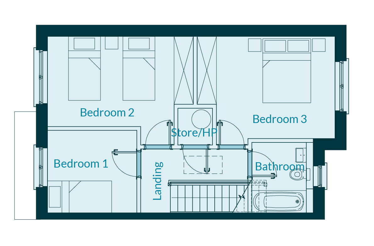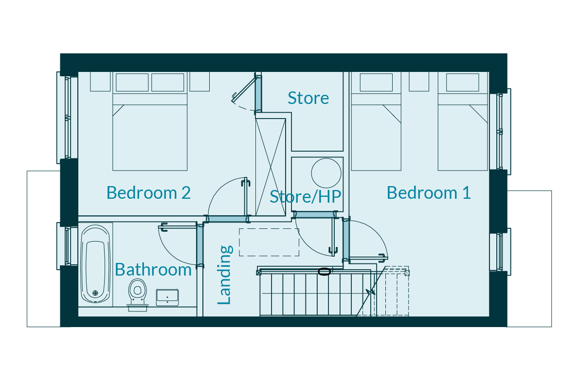 Every home at Church Fields has enjoyed a rigorous and thorough structural treatment – from conception to completion. Concrete foundations are laid to Structural Engineer’s specifications. At ground level, a layer of concrete sits atop the insulation to maximise heat-retention. The overall structure features timber or composite joists with stylish flooring of either softwood or ply/ composite boards. Staircases are timber with painted timber balustrades. The separating walls between houses are structural timber double-frame, supplied and erected by a specialist crew to meet all regulations for sound-containment and fire-safety.